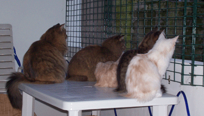 immer von links nach rechts/ nur die Katzen mit Kopf auf den Schultern