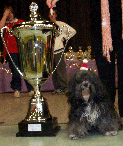 Bild rechts: Vereinsmaskottchen Tara Römer neben unserem gestifteten Pokal für die TOP CAT 2006 (Geschätzte Höhe: 1.10 m, bewerben Sie sich - Sie werden anbauen müssen ... auch ein WIntergarten erscheint ebenfalls geeignet für diesen fetten Pokal.)
