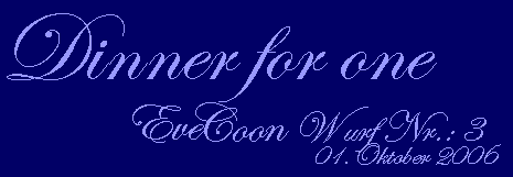 Der EveCoon Wurf Nr 3.: “Dinner for one” hat am Samstag die BEST in SHOW gewonnen.
