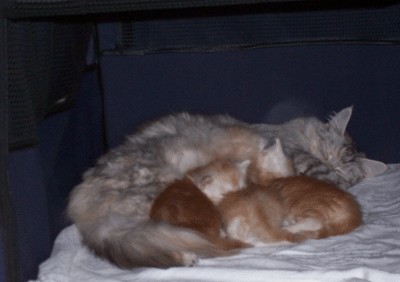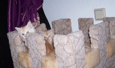 Nachts schlafen die Babys gerne in der Burg der Firma Ehrentreich. Danke, Willy, für den Freundschaftspreis. Kontakt: http://www.willis-katzenshop.de