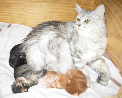 Charmie 2007 mit ihrem 2. Wurf, wieder eine stolze Übermutter.