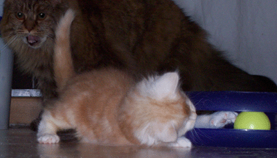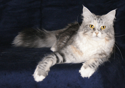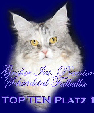 Als kleiner Katze ging es Falballa nicht sehr gut; befreundete Züchter haben die kleine Motte liebevoll und mit viel know how in Sachen natürlicher Medizin wieder auf den Damm gebracht. Falballa entwickelte sich zu einer prächtigen Maine Coon Dame. Natürlich hatten sich ihre Wohltäter in diese hinreißende Katze und ihren liebenswerten Charaker verliebt. Zum großen Bedauern der Züchter (die nicht genannt werden möchten), konnte die Katze auch nicht in der Zuchtgemeinschaft plaziert werden. Vermutlich paßte sie einfach vom Typ her überhaupt nicht zu den vorhandenen Tieren. Schweren Herzens mußte die Katze also wieder abgegeben werden.
