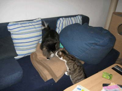 Barbeli mit Louis beim toben “über Tisch und Bänke” ... 11.2007 Danke, Iris für diese schönen Fotos - ich bin sehr glücklich über Dein gelungenes Katzenglück :-))