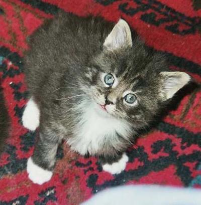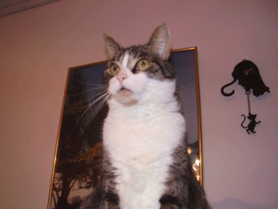 Hi, das bin ich. So harmlos wie hier guck ich nicht immer. Meine neue Mama sagt ja ich hätte “Pfeffer im Aaa..llerwertesten”. Der dicke, rote Sam, der hat gleich mal den ganzen Abend für mich gesungen als ich einzog - ist doch nett von ihm, nicht wahr ... rambambambau - versteh ich aber nicht - was will uns dieser Kater sagen?