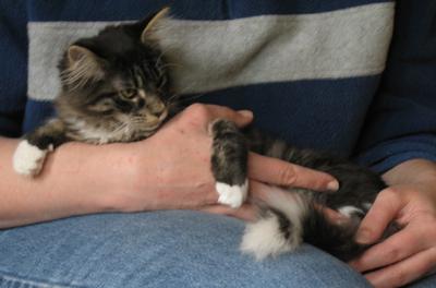 Mit Iris haben wir in gemeinschaftlicher Suche den Menschen gefunden, bei dem meine süße Ginger ihr liebevolles zu Hause haben wird. Zusammen mit Hauskatze Louis (Fotos unten) wird ihr von Iris jeder Wunsch von den Augen abgelesen werden. Sie weiß, daß sie einen ganz großen Schatz bekommt. Ginger wird Iris den lang gepflegten Wunsch nach einer Maine Coon erfüllen. Ginger wird eine traumschöne & große Katzendame werden.