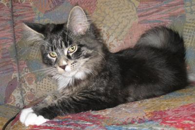 Sie entwickelt sich prächtig und hat bereits nach 12 Monaten alle Attribute einer hervorragenden Maine Coon - Lady.