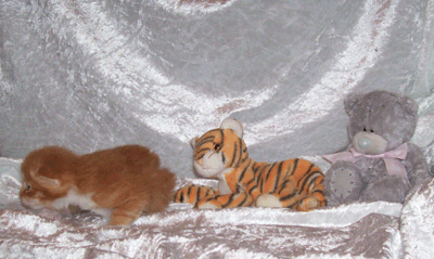 ... dem Sam sein Ausstellungtiger und Paddy`s Austellungsbär waren natürlich mit zur Party angereist ...