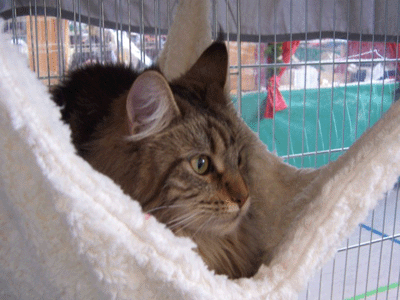 ... 07.12.2008 Bremen Katzenausstellung des Felidae e.V.; Freundin Marion aus Hamburg machte es den Gästen: Barbara, Joany & Winston so gemütlich wie nur möglich - mit Deco und Schild - ganz wie die DICKEN ... :-) lecker zum angeben. Joany hat ihr erstes CAC ... herzlichen Glückwunsch Barbara.