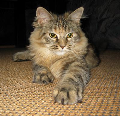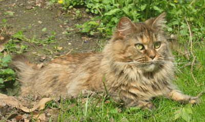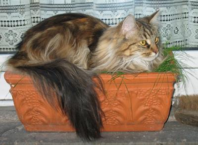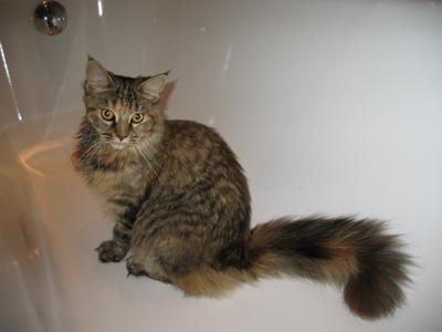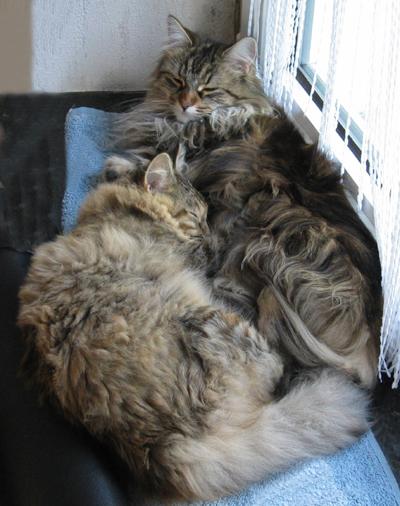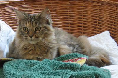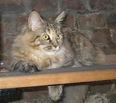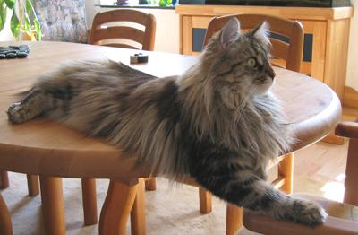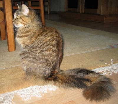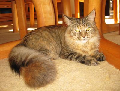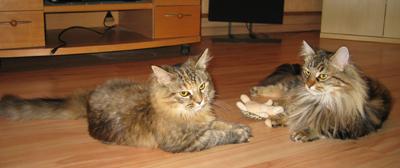 Mimi ist in den ersten beiden Lebensjahren zu einer stattlichen Dame herangewachsen und die eheliche Treue von Ninivee zu Sam wird nun auch nicht mehr in Frage gestellt. Sie ist - wie man sieht - eine blitzsaubere Maine Coon des alten Typs.