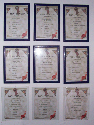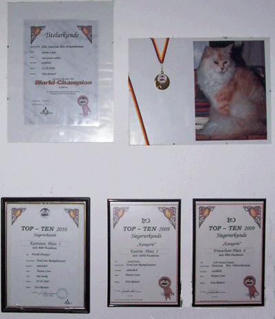 Pokale sind von folgenden Vereinen: 1. ITAVC Deutsche Edelkatze NKV LKV Deutscher Rexkatzen Verein IRCC ICC Edelkatzenverein Bergisch Land RVDE 1. IMCCC DRU 1.DEZKV KVL Hobby Kat Holland GdK Bergischer Katzenverband Rassekatzen NRW |