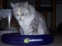... 2008/ bei Freßnapf gab es diesen Riesenkringel: 45 cm im Durchmesser ... und da konnte Roxi wohl nicht widerstehen ... ERWISCHT Nr.: 1 !!! mit 10 Jahren verspielt wie ein kleines Blach ... aber mit wissenschaftlicher Genauigkeit ... :-)))