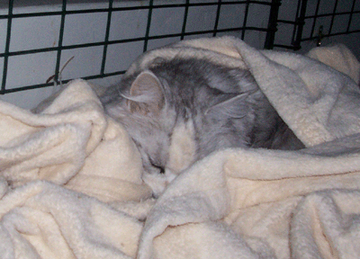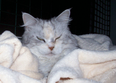 6 Wochen nach Roxis Einzug ist unser aller Liebling Tee Tucker gestorben. Roxi hat in der Nacht nach seinem Tod auf dem Balkon Nachtwache gehalten. Sie war nicht zu bewegen wieder hereinzukommen. Also habe ich sie warm zugedeckt und sie hat draußen geschlafen ...