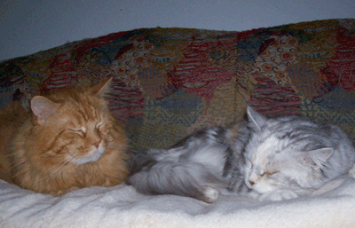 Selbstverständlich (!) hoffen wir alle, daß aus dieser wunderbaren Verpaarung eventuell noch Babys kommen. Hier haben sie jedenfalls die Ruhe weg. Sam & Roxi lieben sich sehr - wie ein altes Ehepaar. Sam und auch der kleine Jerry küssen den Boden, auf dem Roxi gegangen ist. Und Roxi guckt Sam immer mit Herzchen in den schmachtenden Augen an.