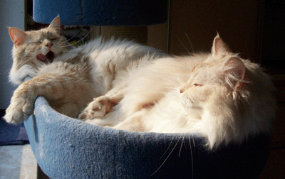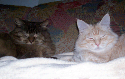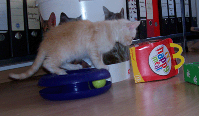 ... vorne Rumpleteazer - Tiger - hinten Ratzmataz - Ratz - mit 7 Monaten ... Tiger ist ein eben echter Ladykiller :-)))