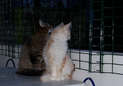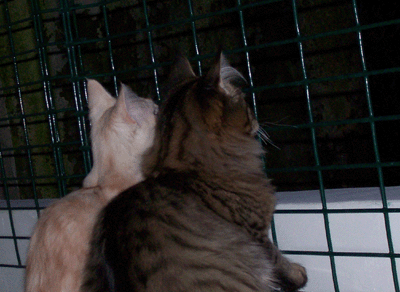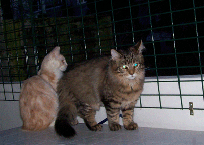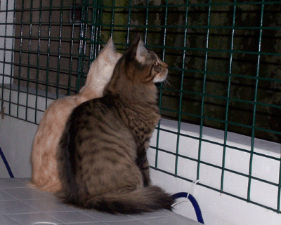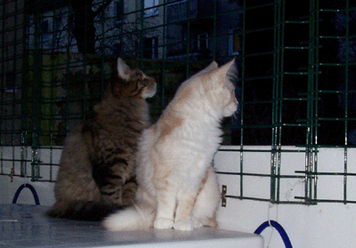 Jetzt schauen sie ganz harmlos aus der Wäsche, nicht war. Die beiden hatten aber seit den frühen Morgenstunden so übel randaliert - bis sie mich endlich aus dem Bett gequält hatten und ich sie auf den Balkon gelassen habe. Da war dann endlich RUHE ! : - ))) Aber die Missis ist auch nicht besser - für den Fall, daß das jemand dachte.