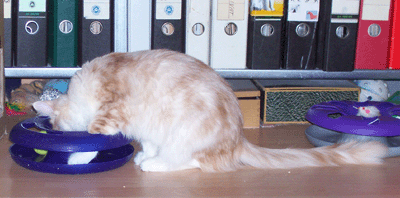 ... und Toby ist das so-wie-so ganz egal ... Pokale kann man vielleicht noch fangen aber nicht essen ... er geht lieber wieder Fliegenfangen ...