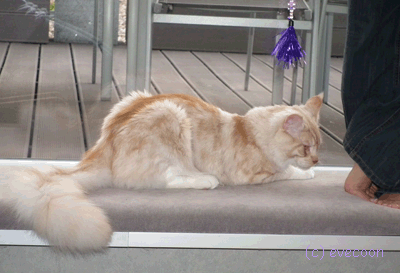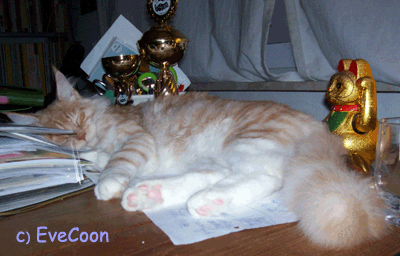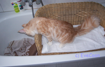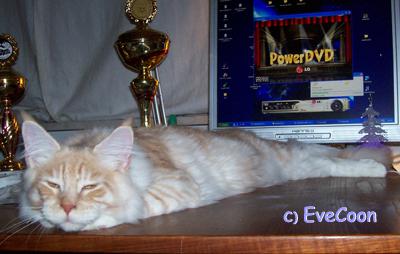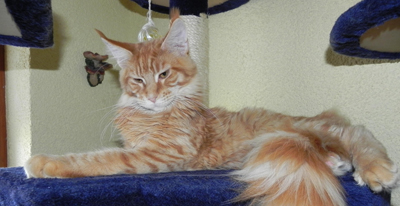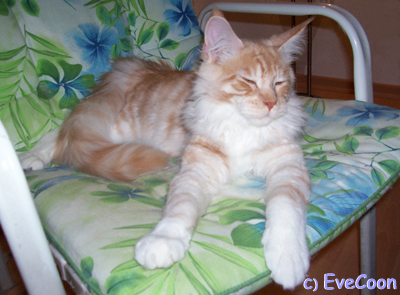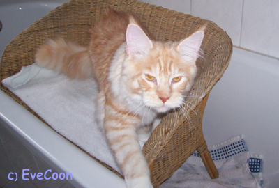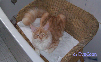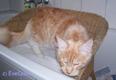 .... derzeitige Hobbies natürlich: futtern und schlafen. Er ist zwar riesig aber immernoch ein BABY ... ;-))) ... er sitzt auf einem 80x80 Brett von Robusta ...