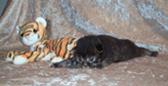 Tee Tucker im Alter von 3 Tagen bis 12 Wochen mit dem Sam sein Ausstellungtiger zum Größenvergleich ...