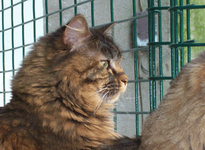 Naja, und dann kam der Sommer 2003, Tucker ist 6-10 Monate ... und der lebende Beweis, daß die Maine Coon doch (!!!) vom Waschbär abstammt :-)